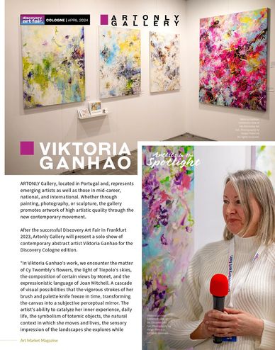 In Viktoria Ganhao's work, we encounter the matter of Cy Twombly's flowers, the light of Tiepolo's skies, the composition of certain views by Monet, and the expressionistic language of Joan Mitchell. A cascade of visual possibilities that the vigorous strokes of her brush and palette knife freeze in time, transforming the canvas into a subjective perceptual mirror. The artist's ability to catalyse her inner experience, daily life, the symbolism of totemic objects, the natural context in which she moves and lives, the sensory impression of the landscapes she explores while traveling, and transform it into a "positive" work of comparison for the audience, which, lovingly directed, has the opportunity to open the space of the mind and translate this composition into their own original sensory experience. In this way, abstract painting may be defined as figurative as it activates concrete images but also as a container of emotions in a "form" of color. Ganhao’s experience of painting practice is layered on multiple levels enriching the fluid narrative with details and insights, always remaining astonishing and metamorphic over time.